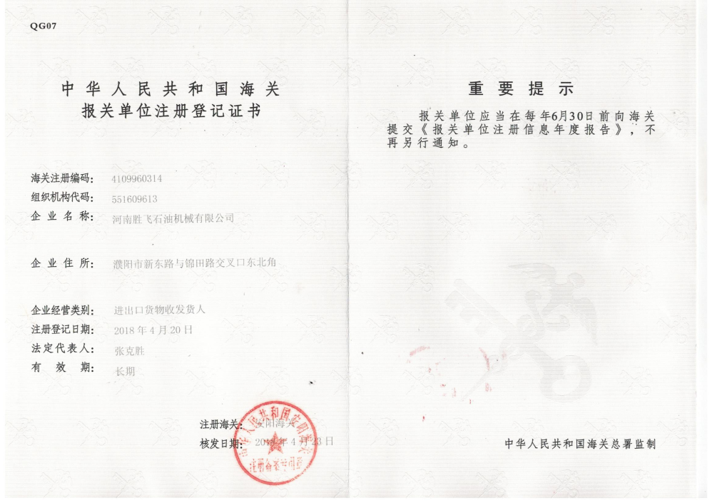• 海關(guān)報(bào)關(guān)單位注冊(cè)登記證書